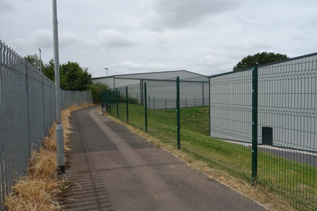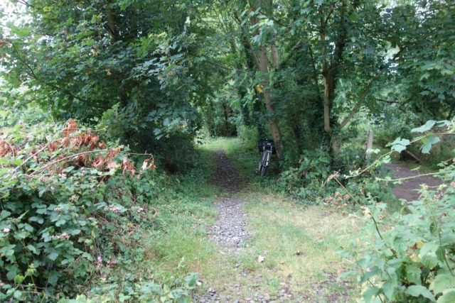 From the motorway embankment, Crossways Cutting has been obliterated. A public footpath remains in the same place where it crossed the line.
