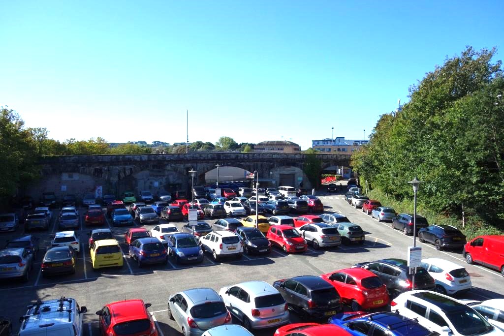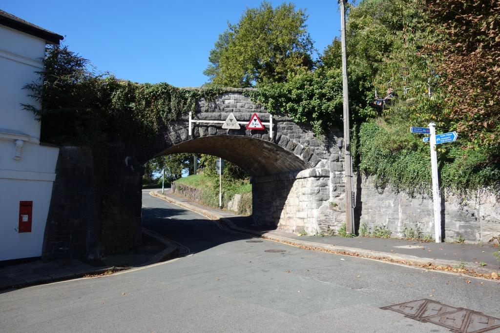 The viaduct is just in view at left and is followed by Glanville Road, Old Launceston Road and a high accommodation bridge. New Launceston Road is seen climbing from the town at bottom right.