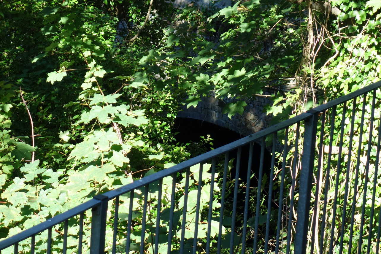 The Tavistock Canal passes beneath the viaduct, which spans the River Lumburn.