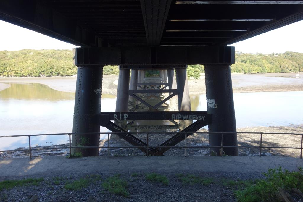 After descending to the tip of the Bere Peninsula, the line crosses the Tavy estuary just before it joins the Tamar. The speed had been raised to 55 m.p.h. over the bridge but has since been brought back to 40 again.