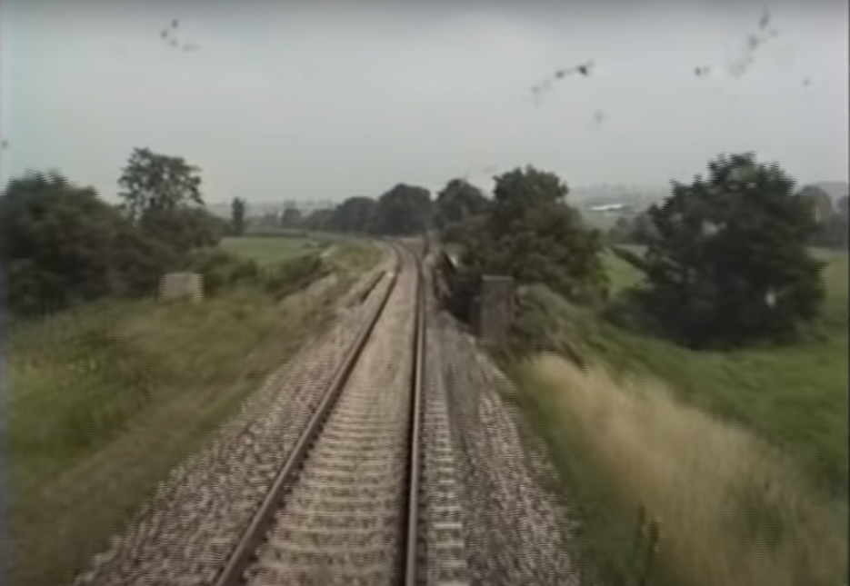 The stills below have been clipped from a film shot from the cab of a Class 50 between Exeter and Salisbury. The former double line has since been reinstated past the traps as part of Axminster’s “dynamic loop.”