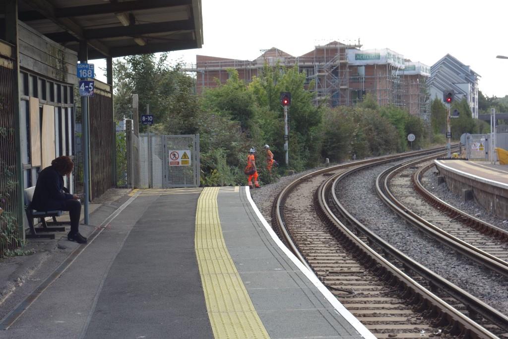 The scout, not spending his every waking moment staring at a tiny, controlling screen, as usual was watching the goings-0n in the real world. Two men from the “Off Track Maintenance” contractor were preparing themselves and the scout wondered what they had been ordered to do; surely they were not here to cut the grass. Eventually, each with a fag in his mouth, they made their way to the end of the platform, one armed with a battery-electric hedge trimmer; the other with a bag, possibly containing more batteries. The one with the tool set about vainly cutting the buddleia while the other acted as lookoutman. It’s easy to see why the railway has become such a ridiculously high cost industry.