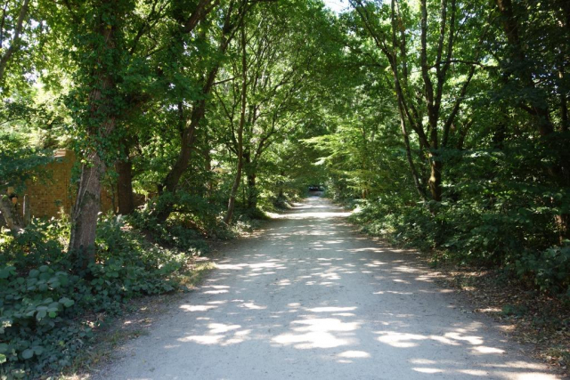 The scout continued along a meandering back road which gave glimpses like this of the marks left by the old S. & D.Jn. North (left) from here lay the 107-yard Downton Tunnel, whose portals are now buried.