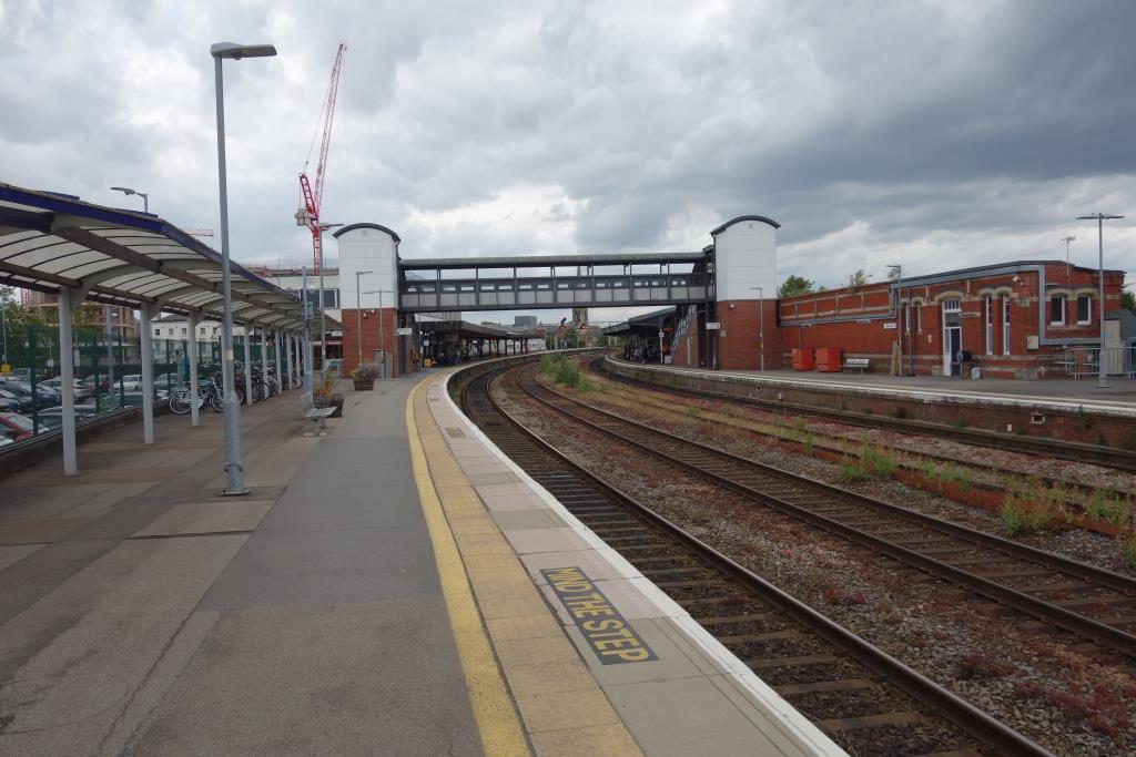 It is certainly not always the case in towns and cities that railway and bus stations are close together. Exeter is an example of a distant relationship between the two.At 659 yards, Gloucester’s Down platform is the longest unbroken one in the country. The line is now bi-directional and a crossover suffices instead of a scissors. +