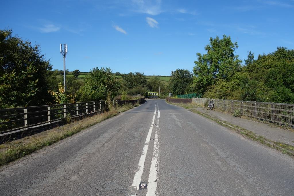 The road here shortly passes over the older Paddleford Bridge across the Culm, whose valley the railway follows.