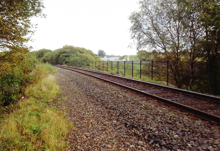“It was photographed at midday in October, 1992. Just beyond the road is the former Southern Railway main line from Waterloo to Plymouth, now a single line mineral branch at this point. Do you see it?