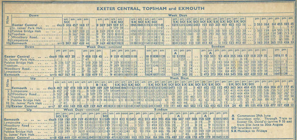 The line continued to be worked as the Southern had done, with all trains starting from or terminating at Central Station. The Central to Exmouth time varied between 26 and 31 minutes for all-stoppers. Far fewer trains called at St. James’ Park