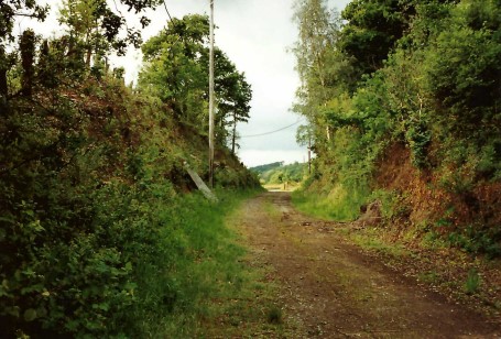 In May, 2024, the course of the line above the valley of the Alphin Brook, around Ide, was viewed from Hambeer Lane.