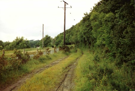 Ahead of the hanging track can be seen the accommodation crossing which gave access to the riverside meadow isolated by the railway. Beyond, the parapets of Ashton River Bridge can be seen.