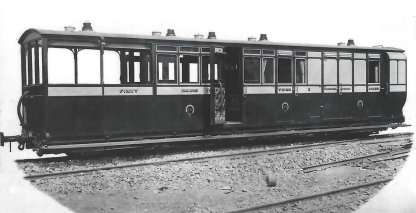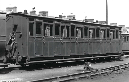 Brake “compo” coach No. 2 (S.R. No. 6992) was one of the 16 vehicles built by the Bristol Wagon & Carriage Works, Co. Ltd., for the opening of the railway. It had 17 First Class seats and eight Third. The livery was reddish-brown and white. The coach weighed nine tons.